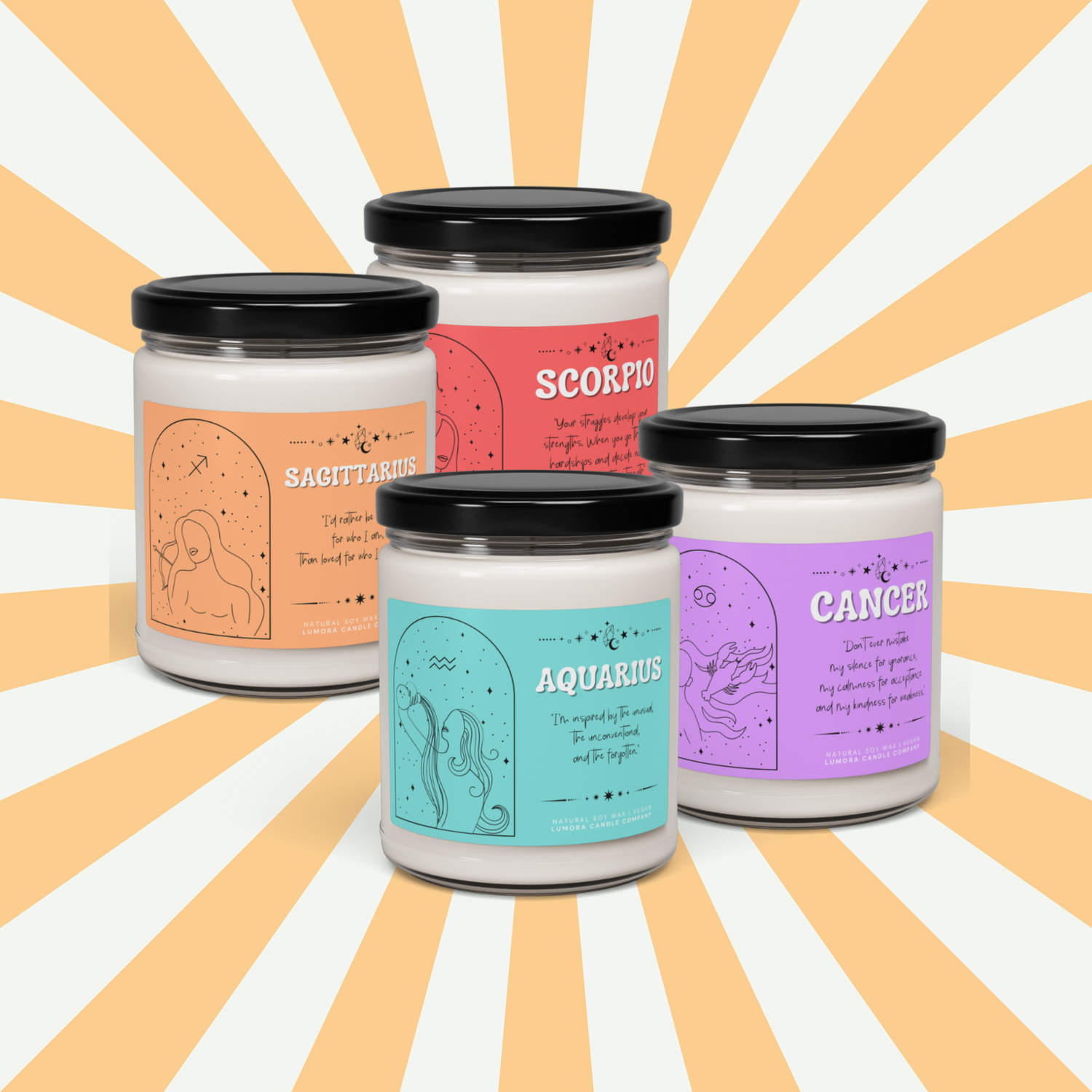 Our Zodiac Candle Collection is designed to align with your energy, bringing scents that reflect the essence of your sign. Made with 100% natural soy wax, each candle is crafted to enhance your space with a fragrance that complements your personality and mood. Whether you're setting intentions, unwinding after a long day, or simply embracing your astrological side, these candles create the perfect atmosphere for every star-aligned moment.